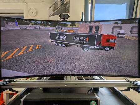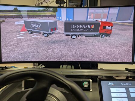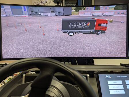 Die Fahraufgaben werden auf dem Hof einer „virtuellen Spedition“ durchgeführt. Die 3-D-Animation vermittelt einen realistischen Eindruck von den zu absolvierenden Aufgaben. Auf der ringförmigen Straße um das „Betriebsgelände“ herum lassen sich auch das Geradeausfahren und das Abbiegen hervorragend einüben.